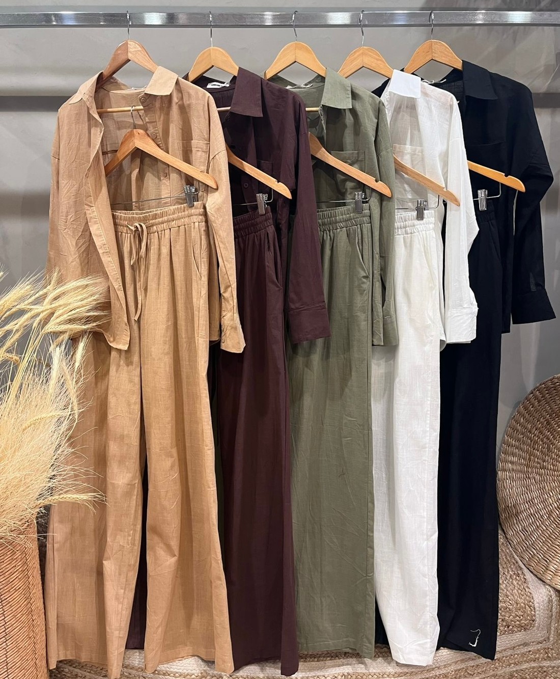 CAMISA E CALÇA CONFECCIONADA VISCOLINHO , PUNHO COM BOTÃO DUPLO PARA AJUSTE. MODELO TEM 1,74 CM VESTE TAM M.